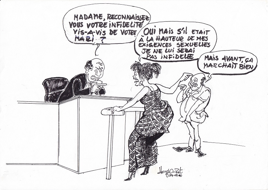 Notre voisin a écourté sa mission sur le champ pétrolier de Komé pour fêter le 14 fevrier avec sa femme. Arrivé dans la nuit du 13 il a eu une désagréable surprise. Madame et son jeune «cousin» qu’elle a exigé et choisi comme chauffeur, ont déjà largement entamé la fête sur le lit conjugale. Avec pour seul cadeau, leurs tenues « Adam&Eve ». Après avoir fait quoi, Dieu seul sait le cousin et la cousine se sont profondément endormi, laissant le réfrigérateur vide et grandement ouvert. Le pauvre voisin qui avait auparavant un problème cardiaque s’est du coup évanoui. Il a fallu plus d’une heure pour le réanimer.